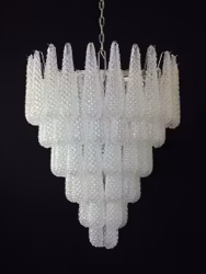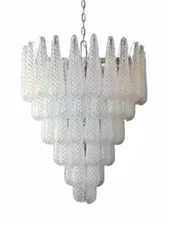 Detta mästerverk av italiensk ljuskrona är utsmyckat med 140 rökfärgade Poliedri-glasdelar. Med sina 140 handblåsta Murano-glaskomponenter kommer denna ljuskrona garanterat att bli en fantastisk blickfångare i vilket rum den än pryder. Stommen levereras som standard i silverpatinerad krom (som visas på bilderna), men den finns även i matt guld, glänsande guld och glänsande krom.