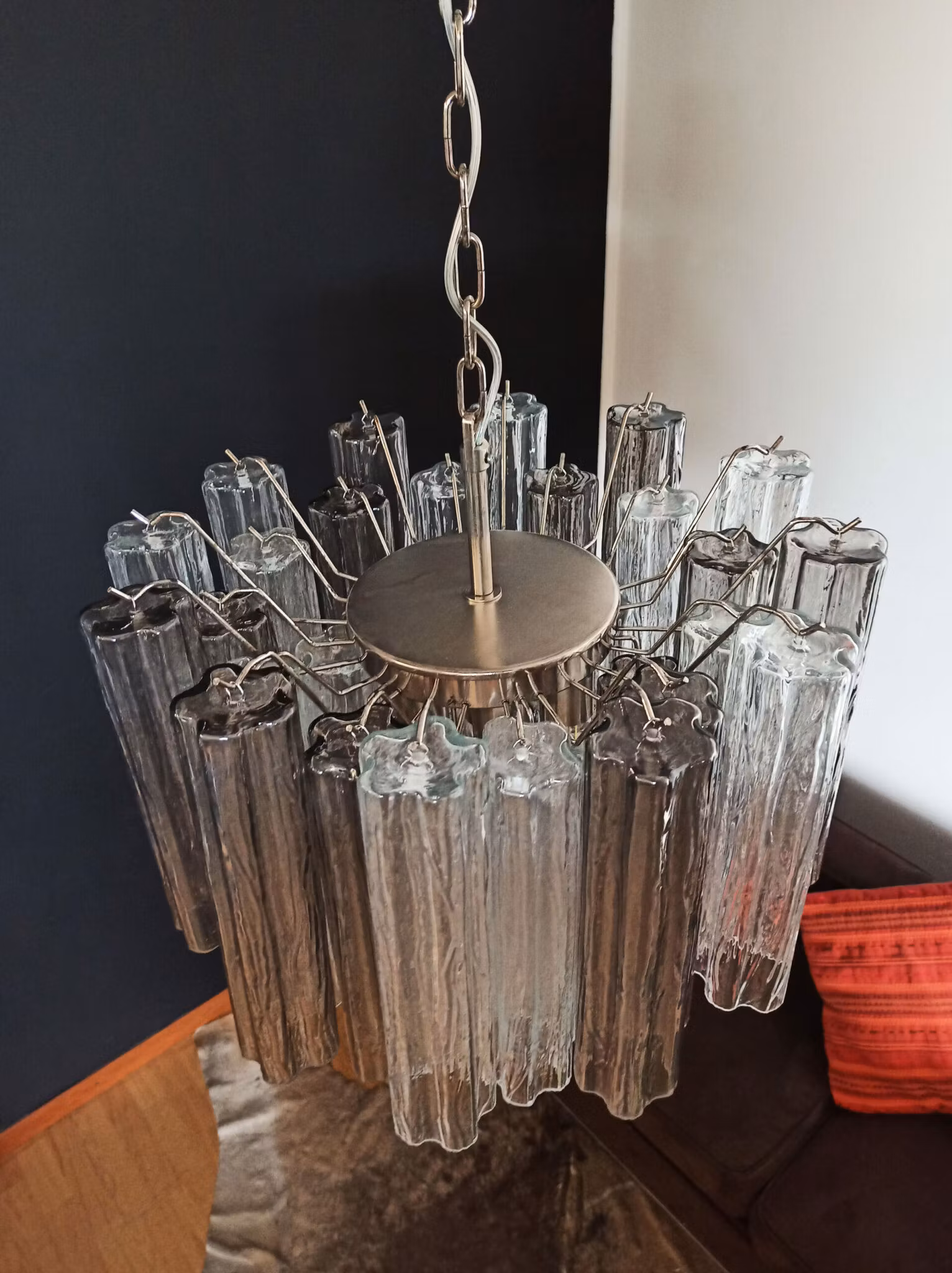 Italiensk ljuskrona i Murano glas med 36 stora rökfärgade och klarglas glasrör som på bilder i stjärnform.