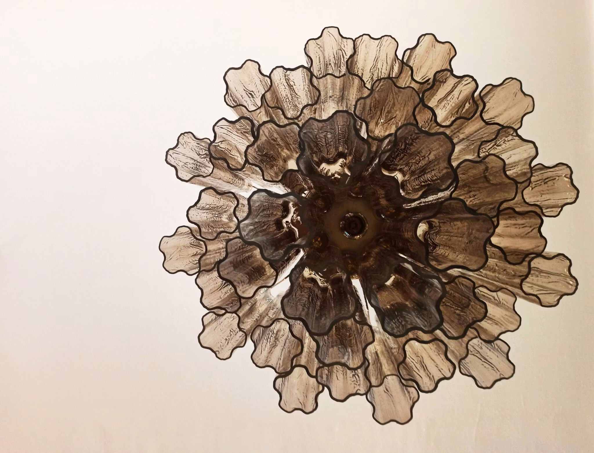 Italiensk ljuskrona i Murano glas med 36 stora rökfärgade glasrör i stjärnform.