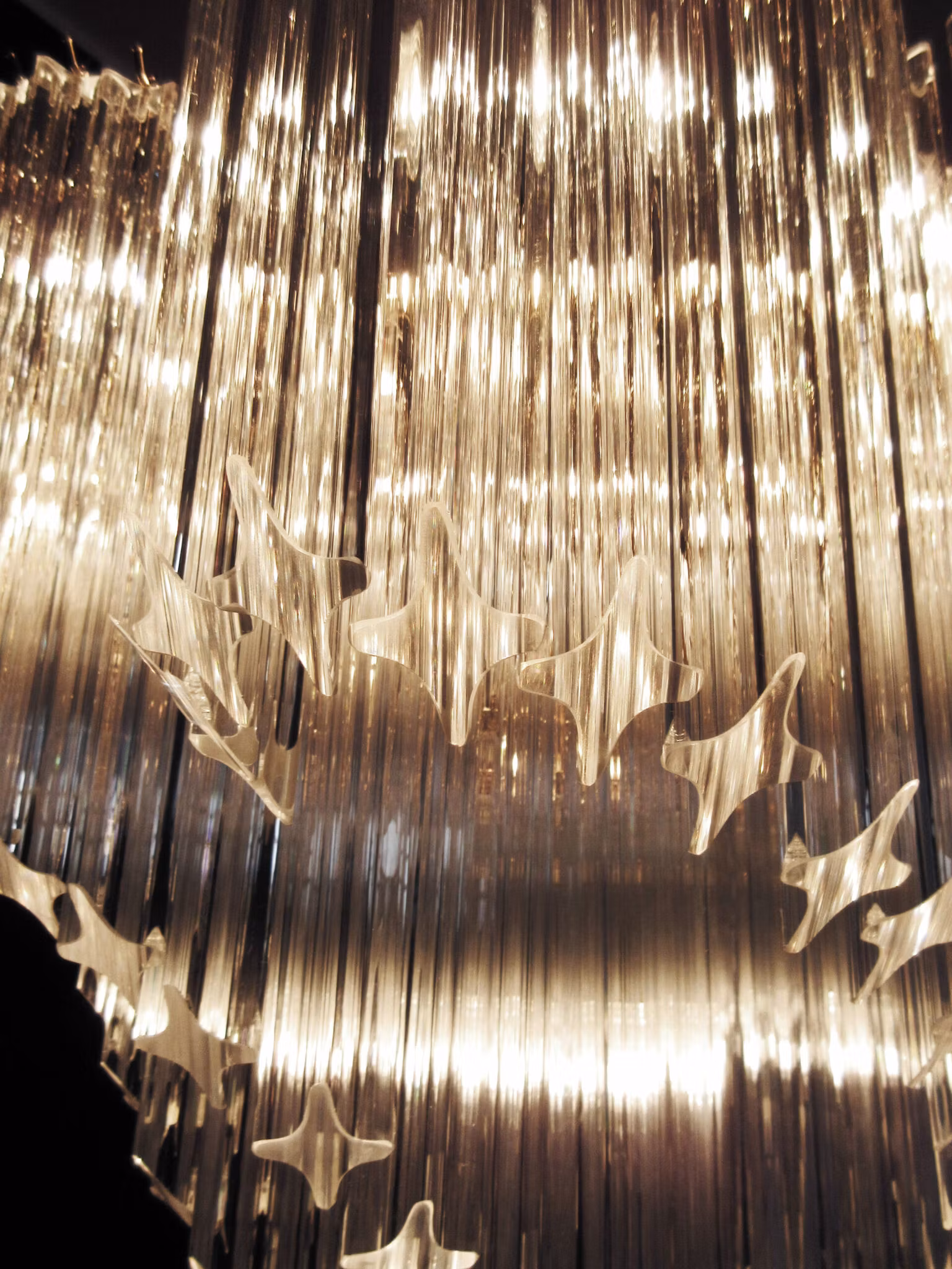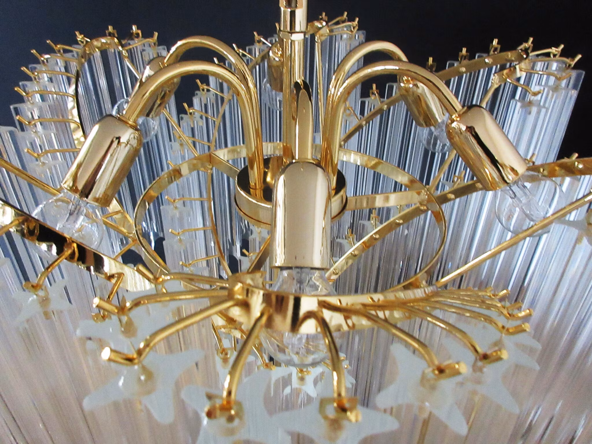 Låt din personliga stil lysa med denna magnifika ljuskrona i Murano-glas. Den består av 114 klara Quadriedri-prismor som fångar och reflekterar ljuset i ett förtrollande spel. Den guldglänsande stommen ger en känsla av lyx och sofistikering, medan den spiralformade designen gör ljuskronan till ett imponerande blickfång – perfekt över matbordet, i vardagsrummet eller i hallen.