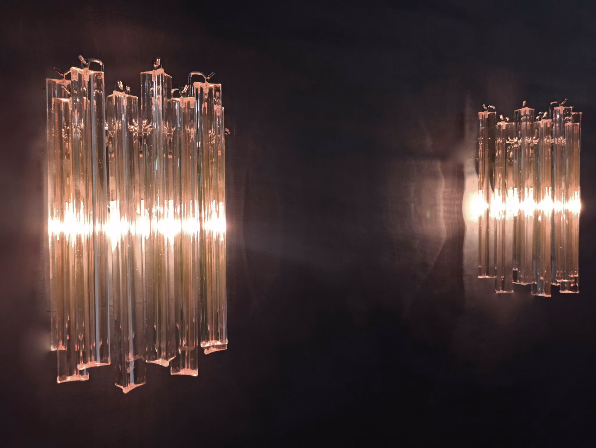 Fantastiskt par Murano vägglampa gjorda av 9 Murano rosa kristall prismor.