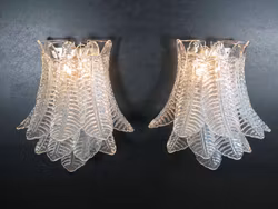 Ett par Six-Tier Felci Vägglampor med 6st glas blad i varje. Lampan är väldigt elegant och snygg och ge ett behagligt ljus.